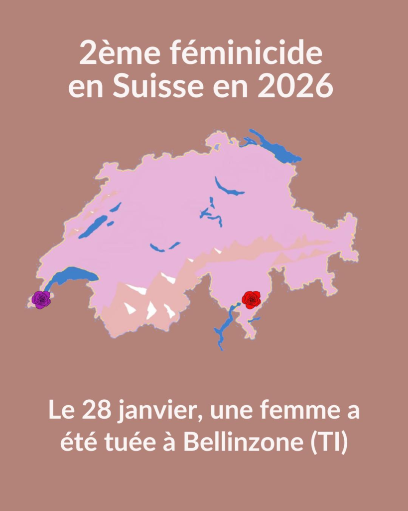 C’est dans la nuit du 23 au 24 janvier 2026, à Carouge (GE) que notre décompte, plein de colère et de tristesse, débute cette année. Le 24 janvier, aux alentours de 4 heures du matin, une femme est retrouvée morte dans son appartement rue Roi-Victor Amé à Carouge (GE). La victime est décédée à la suite de coups de poings et coups de pieds qui auraient été portés par son compagnon, âgé de 49 ans. Nous n’en savons pas plus actuellement.