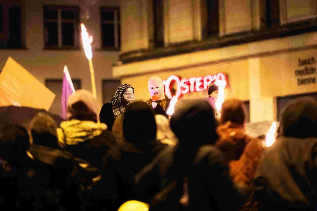 Ich stehe hier für meine Freundin welche nachdem sie eine Feminizidversuch überlebt hat direkt mehrere Stunden bei der Polizei ausgesagt hat und dann wieder in die blutverschmierte Wohnung zurückging ohne das ihr irgendeine Art von Unterstützung oder alternativer Schlafensplatz angeboten wurde. Da der Täter schon in U-Haft war.
